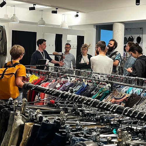 Berlin - Unter dem Motto „Stitching together a social and circular future for textiles“ kamen im Juni führende Experten aus der Textilbranche, Social Entrepreneurs, politische Entscheidungsträger sowie Führungskräfte von Sozialunternehmen zur internationalen RREUSE Konferenz zusammen. RREUSE ist als internationales Netzwerk für Sozialunternehmen in unterschiedlichen Themenbereichen der Kreislaufwirtschaft aktiv, speziell in der Wiederverwendung, der Reparatur und dem Recycling von Textilien. Zum Abschluss der zweitägigen Konferenz, die gemeinsam mit FairWertung e.V. organisiert wurde, fanden Exkursionen zu zwei Projekten zum Umgang von Alttextilien in Berlin statt, darunter auch der rack 'n white charity club der Deutschen Kleiderstiftung in Berlin Mitte. Hier befindet sich auch das Hauptstadtbüro der Organisation. Vor einer internationalen Delegation referierte unser Mitarbeiter Eike Müller über die Wirkungsweise der Charity Shops und die humanitäre Arbeit der Deutschen Kleiderstiftung.