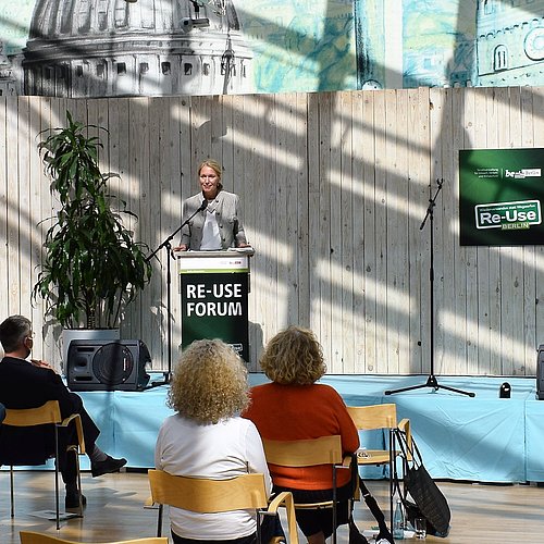Stefan Tidow, Staatssekretär für Umwelt und Klimaschutz, hat gestern den ersten Re-Use Store für Gebrauchtwaren in einem Berliner Kaufhaus eröffnet. Ein halbes Jahr lang werden gut erhaltene Gebrauchtwaren im 3. Stock bei Karstadt am Herrmannplatz angeboten. Kund*innen finden hier u.a. gebrauchte hochwertige Bekleidung von Zweimalschön und rack 'n white, aber auch Hausrat, Möbel sowie Informations- und Kommunikationstechnik. Begleitet wird das Gebrauchtwaren-Angebot von einer Annahme für kleine Reparaturen von IT-Produkten sowie von Workshops, u.a. zur Retourenrettung von Textilien und zur Lebensmittelrettung. Zusätzlich finden alle 14 Tage donnerstags im Re-Use Forum in der 4. Etage Veranstaltungen statt, u.a. zum Thema Repair-Café und Reparaturnetzwerk.