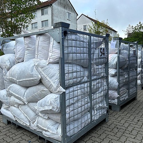 Helmstedt, Gliwice, 17.04.2024 - Wieder einmal wurden zahlreiche Kartons, Ballen und vor allem Säcke auf dem Gelände der Kleiderstiftung verladen. Mit mehr als 15 Tonnen Hilfsgütern startete ein LKW in Richtung polinische Grenze. In Gliwice wird er bereits erwartet. Schon seit 2022 liefert die Deutsche Kleiderstiftung immer wieder Kleidung, Schuhe und Heimtextilien in den rund 700 KM entfernten polnischen Ort. Von dort aus werden Hilfstransporte in die Ukraine organisiert, aber auch nach Polen geflüchtete Menschen versorgt. Dank großzügiger Unternehmensspenden befinden sich auf diesem Transport neben guter gebrauchter Kleidung auch neue Schuhe und Textilien. Die Kleiderstiftung dankt allen Spenderinnen und Spendern und freut sich auf weitere Unterstützung!