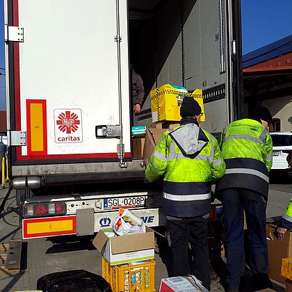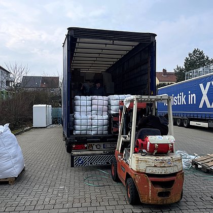 Ein Transport für Betroffene des Krieges wurde beladen und auf den Weg gebracht.