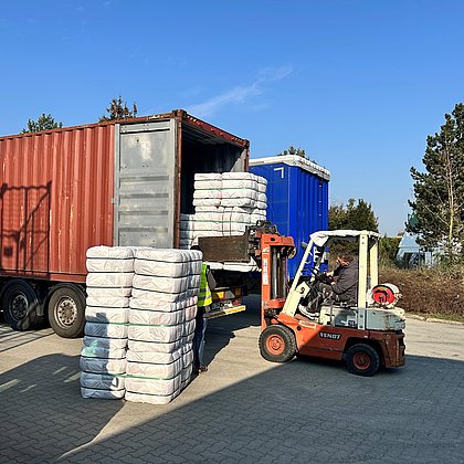 Fast 15 Tonnen Textilien wurden für Hilfstransport verladen.