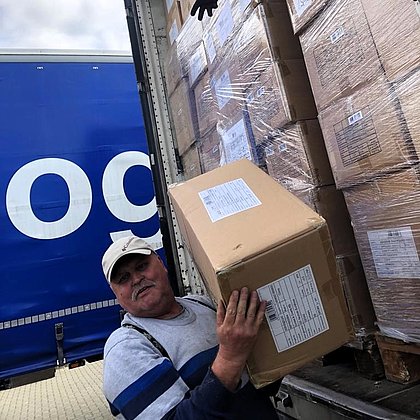 Ein Hilfstransport brachte Arbeitsbekleidung in die Ukraine.