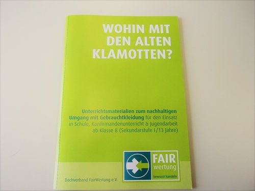 Unser Dachverband FairWertung e.V. hat Unterrichtsmaterialien zum nachhaltigen Umgang mit Gebrauchtkleidung erarbeitet. Sie sind für den Einsatz in Schule, Konfirmandenunterricht und Jugendarbeit ab Klasse 8 gedacht. Ab sofort können Sie eine PDF-Datei mit den Materialien auf unserer Homepage kostenlos herunterladen. Klicken Sie hier